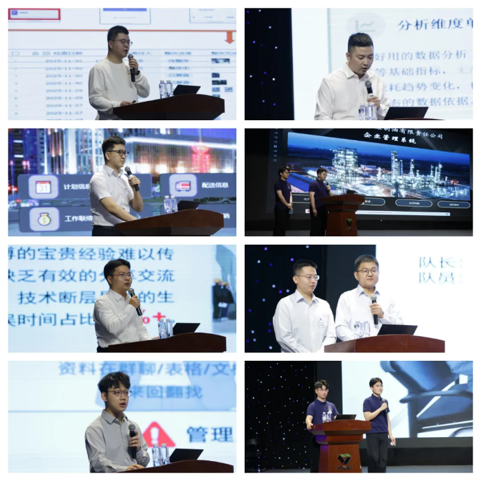 大赛案例展示环节,来自生产运营、市场营销、财务管理、人力资源等各业务领域的16支参赛团队同台竞技,通过具体业务场景,生动展示了飞书多维表格、集成门户、自动化工作流等工具在提升效率、优化流程、辅助决策方面的实际价值。经过精彩角逐,“伊路畅行”团队凭借突出的数字化创新与实践成果斩获一等奖;“一期管培生·销勇七先锋”与“化安先锋队”获二等奖;“人力行政通”、“ag真人平台官方化工企管提效先锋队”及“煤制油电效先锋队”获三等奖;“ag真人平台官方化工生产部质环效率组”获得人气奖。